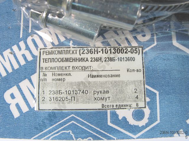 236Н-1013002-05 Ремкомплект теплообменника 236Н,238Б-1013600 рукава, хомуты
