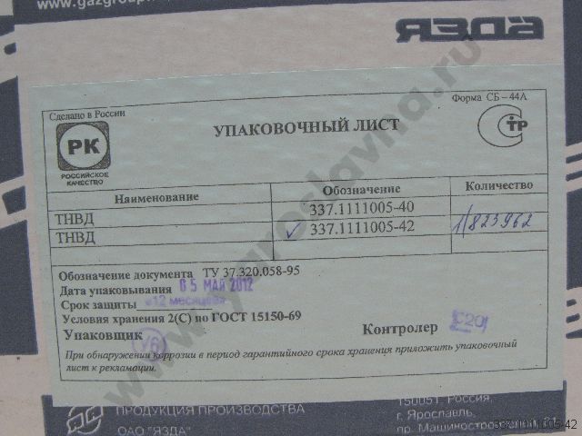 | 337-1111002-42 | Ремкомплект ТНВД 337-40 РТИ+паронит | 1 |