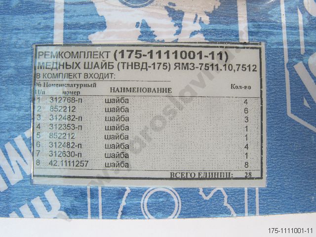 175-1111001-11 Ремкомплект ТНВД 175. медных шайб