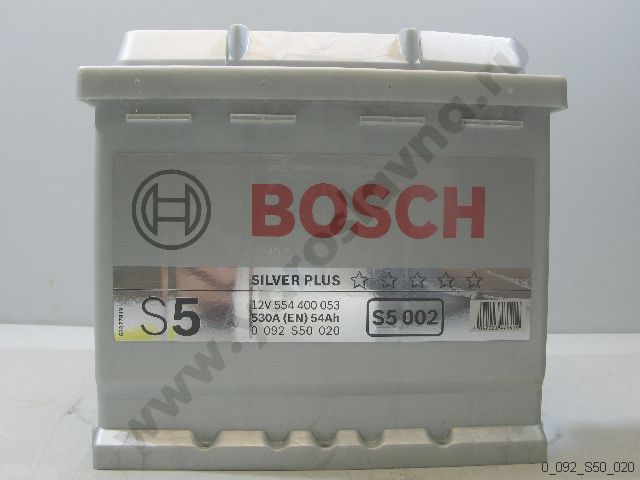 0 092 S50 020 Аккумулятор S5 002, ETN 554 400 053 54А/ч, 530А, 207x175x190 BOSCH