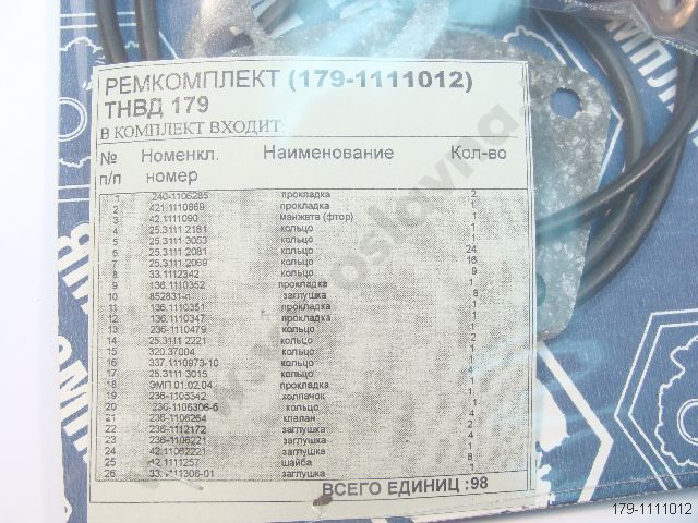 179-1111012 Ремкомплект ТНВД 179. РТИ+Cu+паронит+пласт