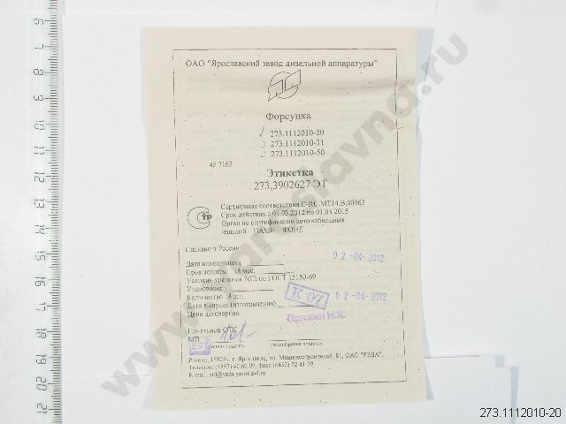 273.1112010-20 Форсунка дв. -740.30/-740.50 EURO-2 ЯЗДА