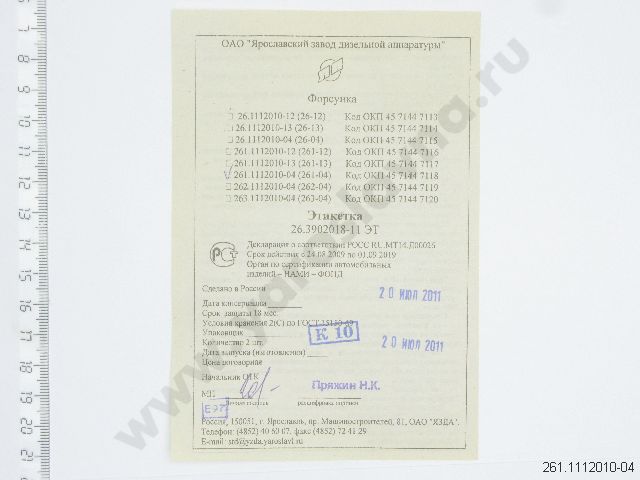 261.1112010-04 Форсунка вместо 261.1112010-03 ЯЗДА
