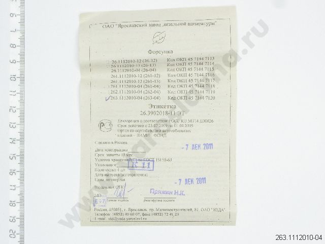 263.1112010-04 Форсунка вместо 263.1112010-03 ТУРБО ЯЗДА